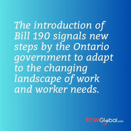 As Ontario considers the new changes proposed by Bill 190, it's important for businesses to stay informed and adapt effectively. TCWGlobal specializes in providing up-to-date information and workforce management solutions across Ontario and throughout Canada.